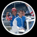 Jockeys pose with $850,000 worth of motor vehicles at Monmouth Park Racetrack.